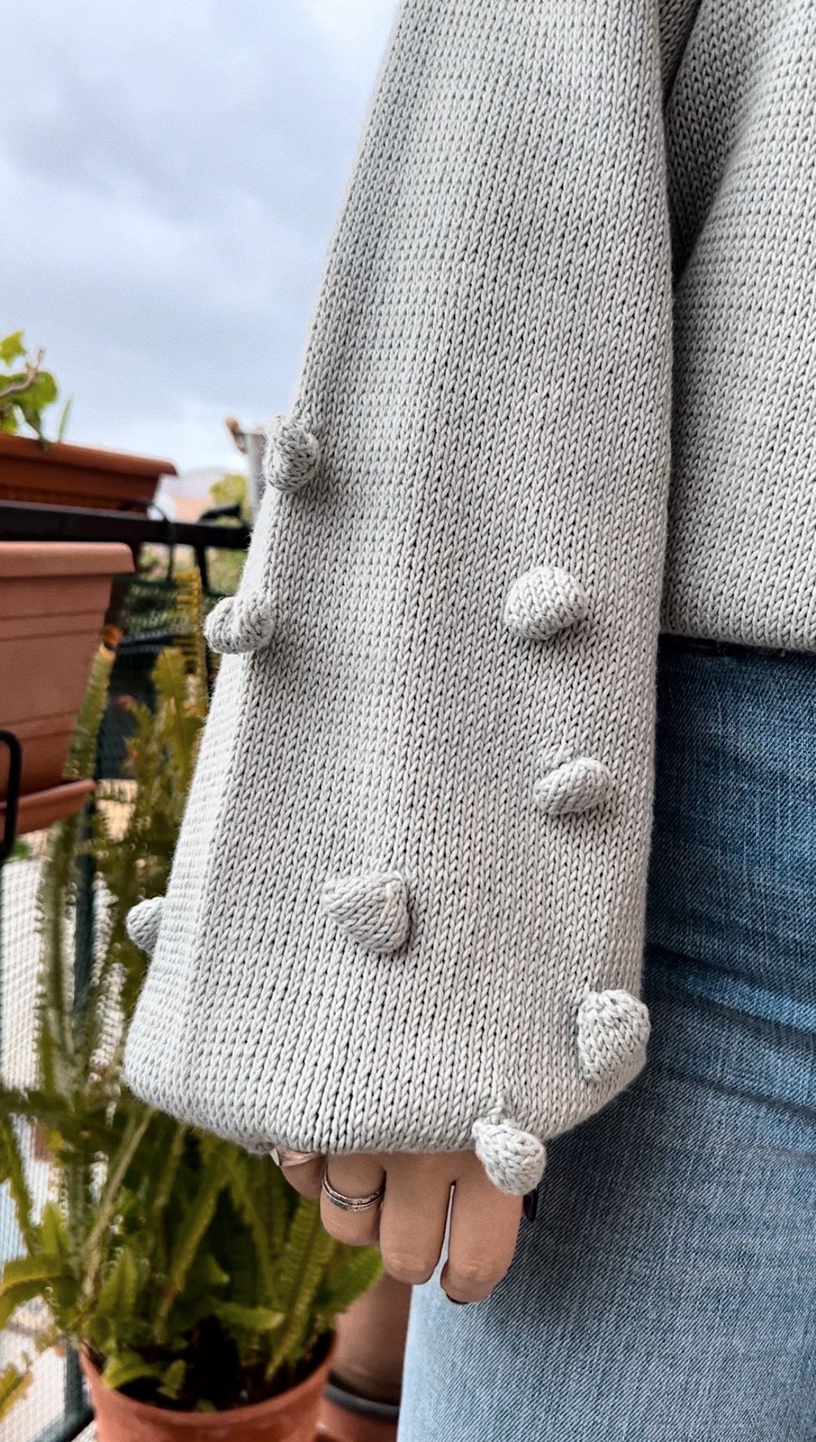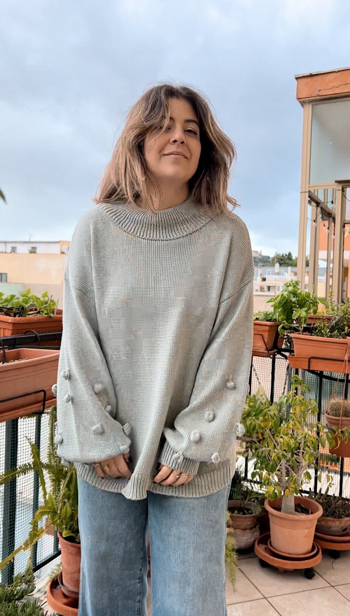 Cotone biologico color carta da zucchero sbiadito, con dettaglio pibiones nelle maniche.
