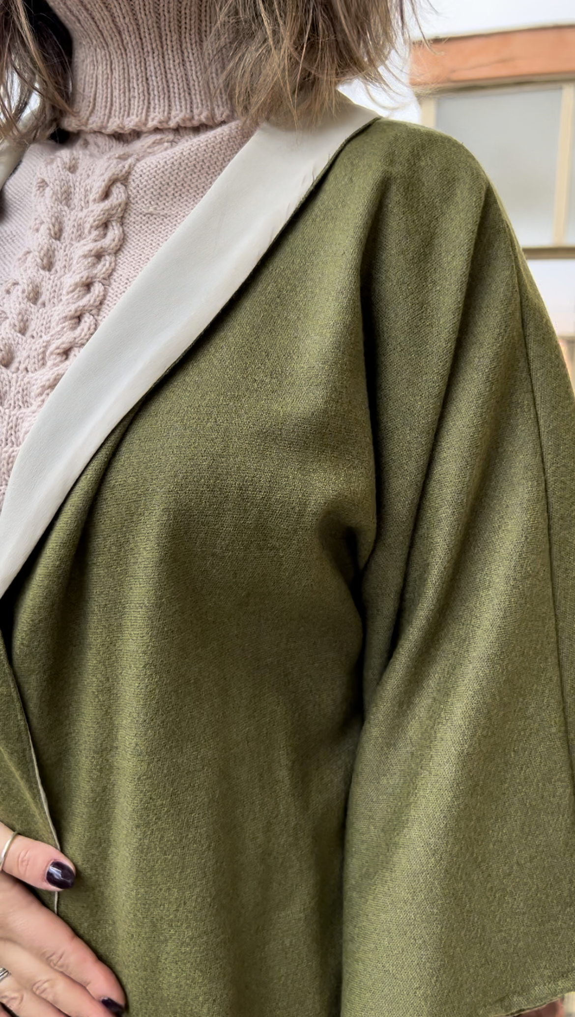 Ho deciso di recuperarne un bel po’ e di utilizzarle per creare i Kimono Shiori, dalla linea semplice ma elegante, grazie alla linea creata dal collo sciallato rigido che incornicia le spalle.