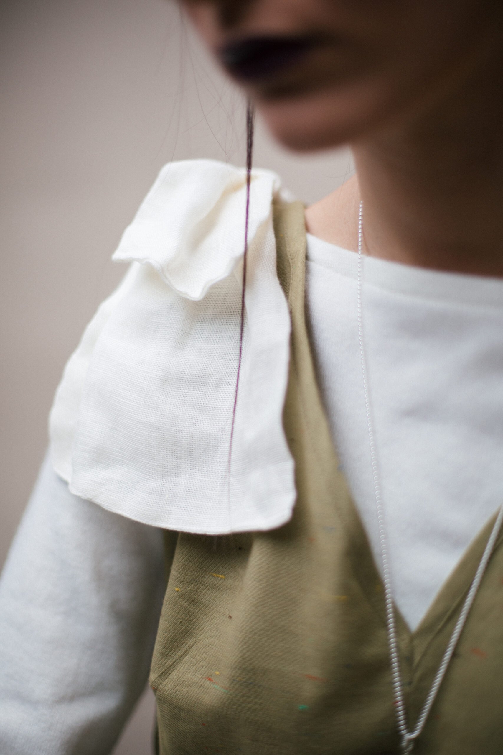 To embellish everything, I added a touch of hemp: a large, sagging bow on the right shoulder.